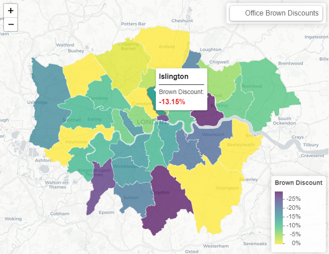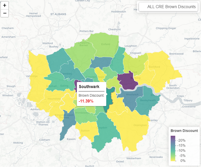 Figure 4: Brown discounts in all types of CRE buildings across London boroughs